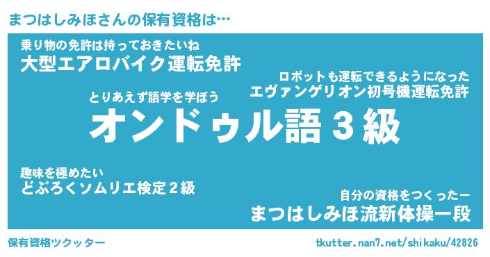 | ヒーロー風カッコイイあだ名 | 『スーパーマツハシミホ』『魔戒騎士マツ』 |