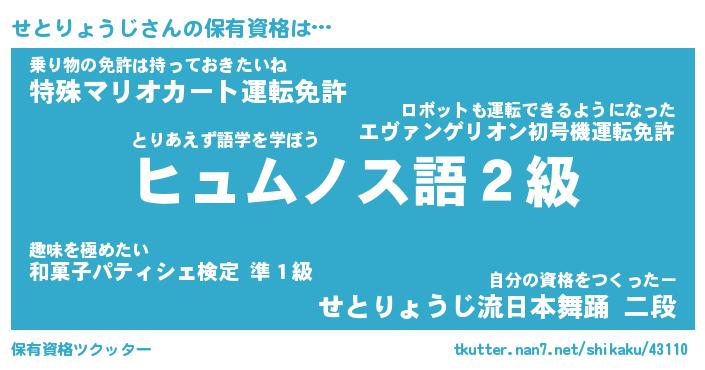 | ツイッター | せとりょうじさんのツイッターID『namakemono_man』 |