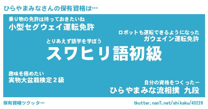 | ヒーロー風カッコイイあだ名 | 『スーパーヒラヤマミナ』『天弓騎士ヒラ』 |