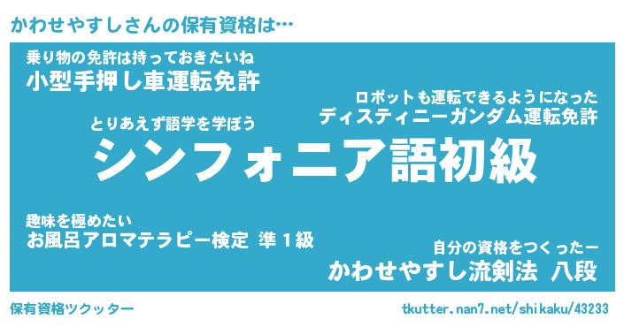 | 女子向けラノベタイトル風あだ名 | 『(仮)かわせやすしのやんごとなき事情』 |