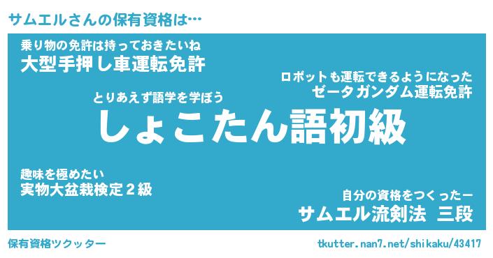 | ファンタジー風あだ名 | 『サムフェル』『エターナルサムエルー』 |
