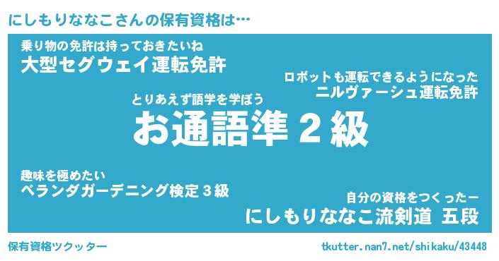 | 伝説のあだ名 | 『不死鳥のスナイパーにしもりななこ』 |