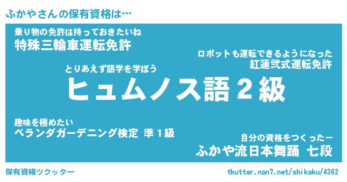 | ファンタジー風あだ名 | 『フカフェル』『エターナルフカヤー』 |