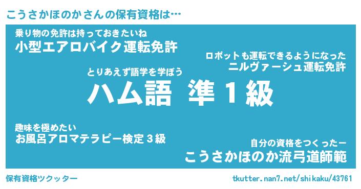 | 伝説のあだ名 | 『不死鳥の傭兵こうさかほのか』 |