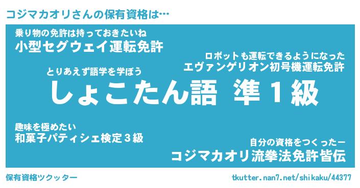 | ヒーロー風カッコイイあだ名 | 『スーパーコジマカオリ』『天弓騎士コジ』 |