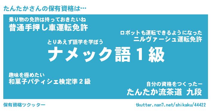 | 男性向けラノベタイトル風あだ名 | 『たんたかの憂鬱』 |