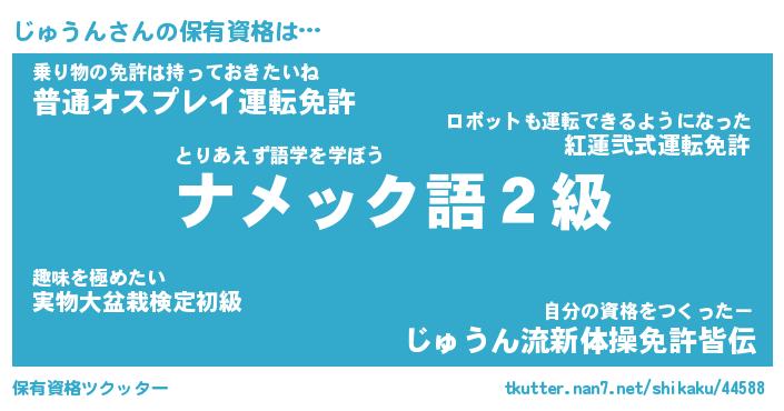 | ヘコむあだ名 | 『じゅふぇ~』『つくし』『じゅ太郎』 |