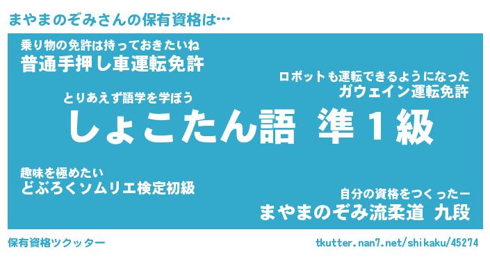 | 肩書あだ名 | 『まやまのぞみ店長』『まやまのぞみ塾長』 |