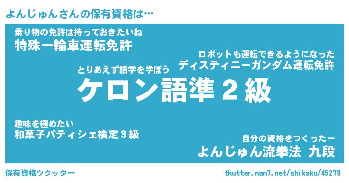 | 男性向けラノベタイトル風あだ名 | 『よんじゅんの憂鬱』 |