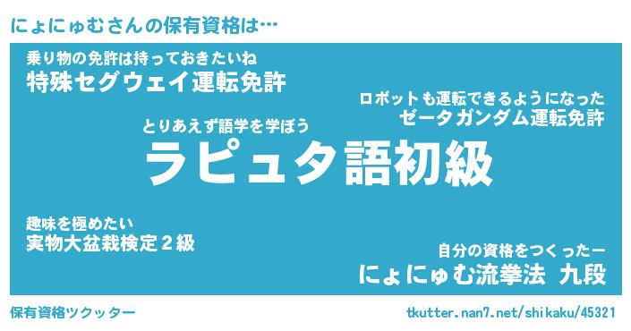 | ファンタジー風あだ名 | 『ニョフェル』『エターナルニョニュムー』 |