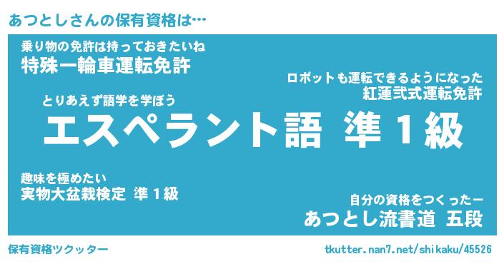 | ヒーロー風カッコイイあだ名 | 『スーパーアツトシ』『天弓騎士アツ』 |