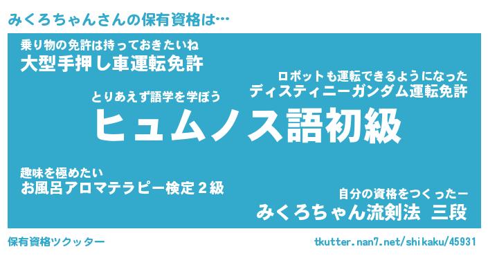 | ヒーロー風カッコイイあだ名 | 『スーパーミクロチャン』『魔戒騎士ミク』 |