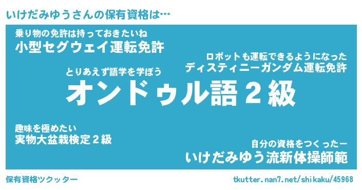 | ヒーロー風カッコイイあだ名 | 『スーパーイケダミユウ』『炎刃騎士イケ』 |