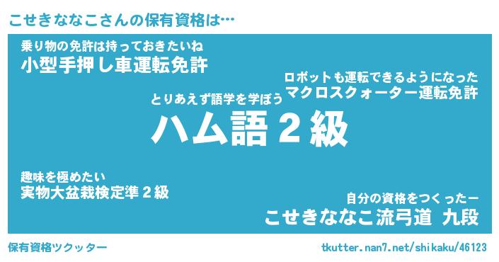 | ヒーロー風カッコイイあだ名 | 『スーパーコセキナナコ』『魔戒騎士コセ』 |