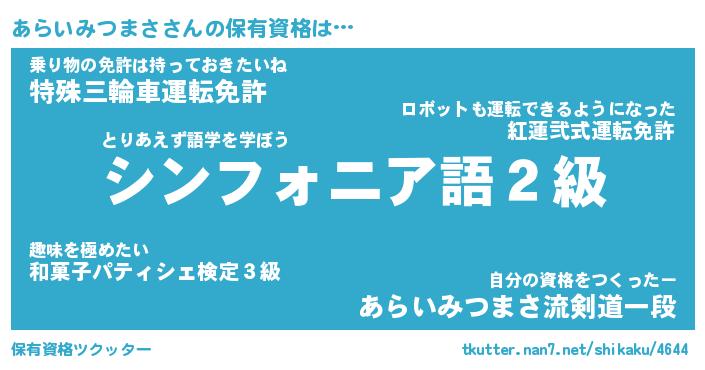 | 女子向けラノベタイトル風あだ名 | 『(仮)あらいみつまさのやんごとなき事情』 |