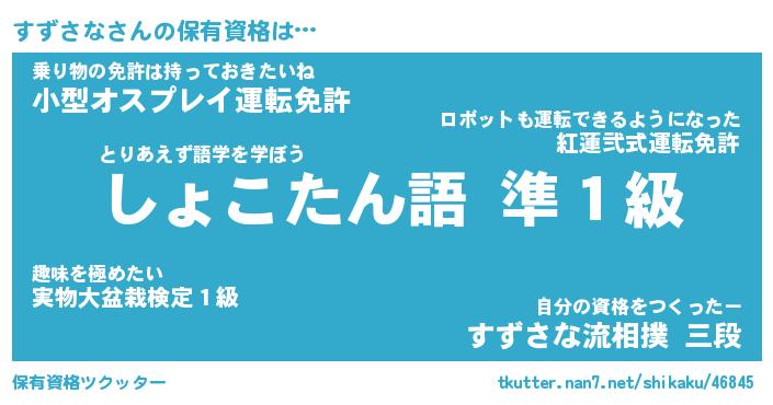 | ファンタジー風あだ名 | 『スズフェル』『エターナルスズサナー』 |