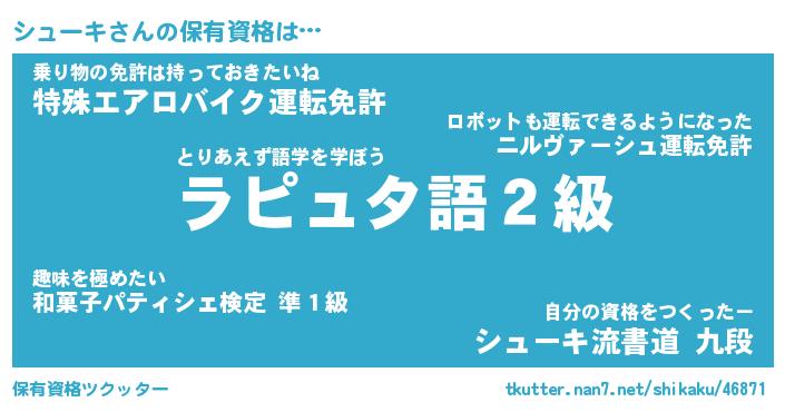 | ファンタジー風あだ名 | 『シュフェル』『エターナルシューキー』 |