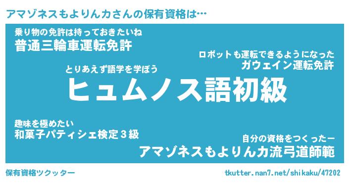 | 伝説のあだ名 | 『封印されしスナイパーアマゾネスもよりんカ』 |