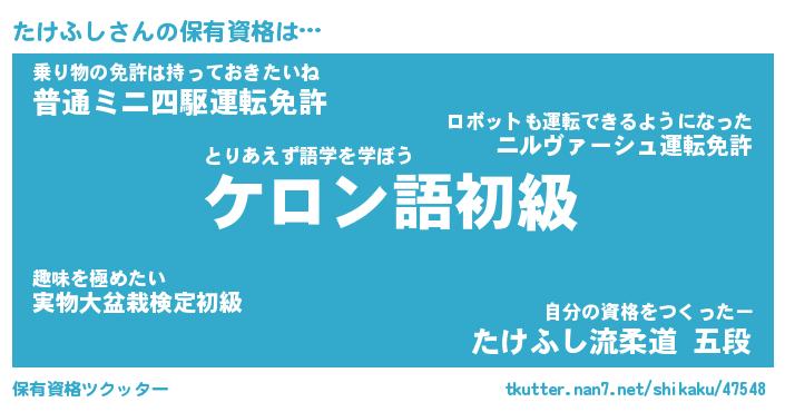 | ヒーロー風カッコイイあだ名 | 『スーパータケフシ』『暗黒騎士タケ』 |