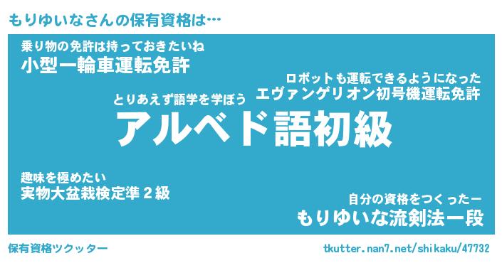 | ツイッター | もりゆいなさんのツイッターID『dendenmushi_nyan』 |