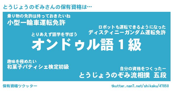 | 肩書あだ名 | 『とうじょうのぞみ社長』 |