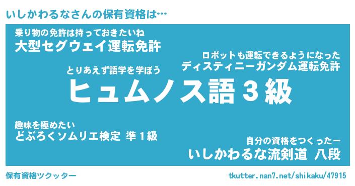 | ヒーロー風カッコイイあだ名 | 『スーパーイシカワルナ』『黄金騎士イシ』 |