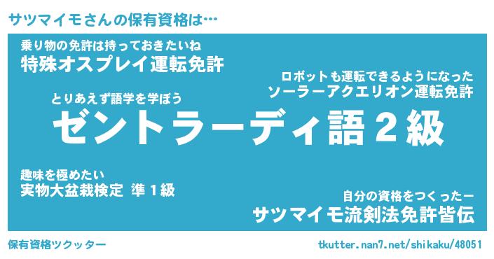 | ファンタジー風あだ名 | 『サツフェル』『エターナルサツマイモー』 |