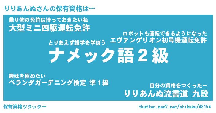 | 肩書あだ名 | 『りりあんぬCEO』『りりあんぬ国家主席』 |