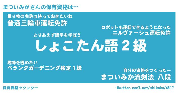 | 恥ずかしいあだ名 | 『プリティーまついみか』『まつっちょ』 |