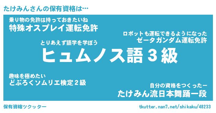 | ファンタジー風あだ名 | 『タケフェル』『エターナルタケミンー』 |