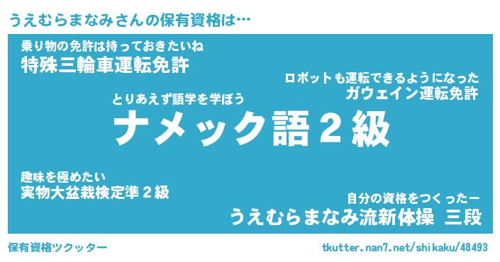 | 伝説のあだ名 | 『不死鳥の竜騎士うえむらまなみ』 |