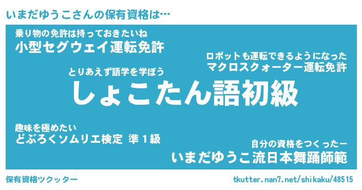 | ポケモン風あだ名 | 『イマチュウ』『イマダダネ』 |