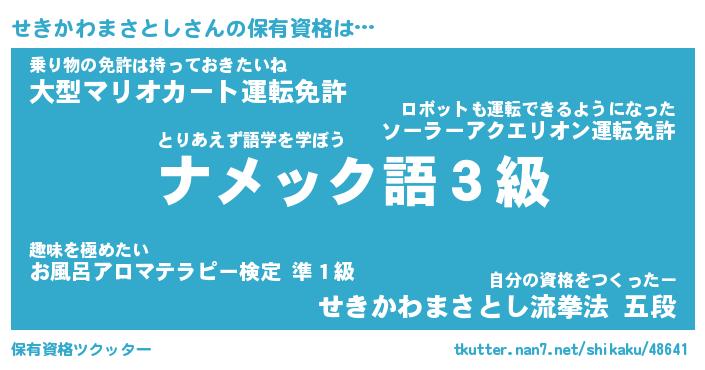 | 女子向けラノベタイトル風あだ名 | 『せきかわまさとし姫と円卓の騎士』 |