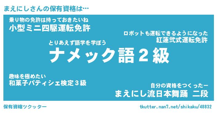 | 意味不明あだ名 | 『ペロリンまえにし』『永久保存まえにし』 |