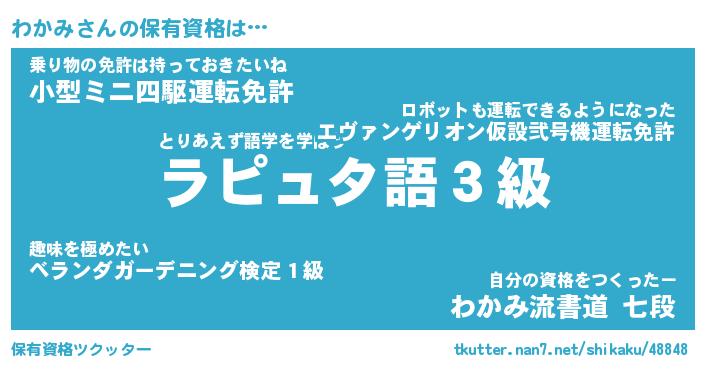 | 自動車の名前っぽいあだ名 | 『ワカティマ』『ワスラー』『ワンR』 |