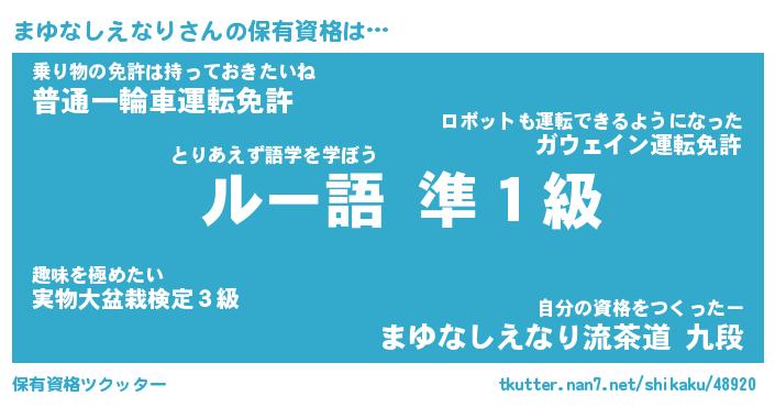 | 伝説のあだ名 | 『封印されし傭兵まゆなしえなり』 |