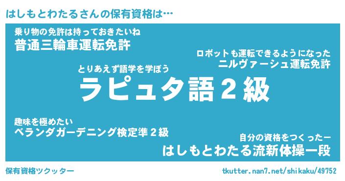 | ツイッター | はしもとわたるさんのツイッターID『katatsumuri_star』 |