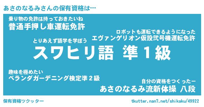 | ヒーロー風カッコイイあだ名 | 『スーパーアサノナルミ』『幻影騎士アサ』 |