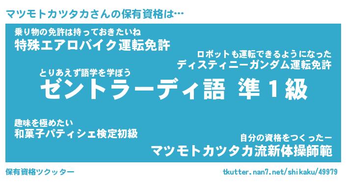 | 男性向けラノベタイトル風あだ名 | 『マツモトカツタカの憂鬱』 |