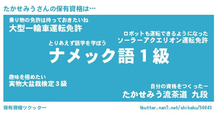 | ファンタジー風あだ名 | 『タカフェル』『エターナルタカセミウー』 |