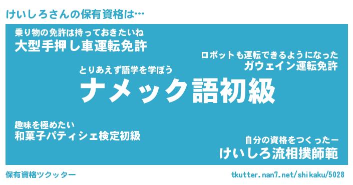 | 意味不明あだ名 | 『ペロリンけいしろ』『永久保存けいしろ』 |