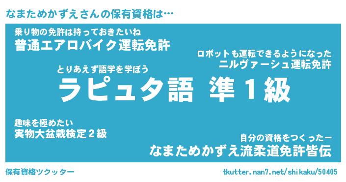 | 肩書あだ名 | 『なまためかずえ店長』 |