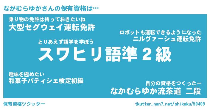 | 恥ずかしいあだ名 | 『プリティーなかむらゆか』『なかっちょ』 |