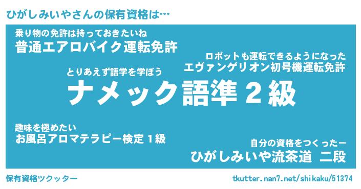 | 胡散臭い通販商品みたいなあだ名 | 『モテモテ間違いなし霊験あらたかなお札…その名も「ひがしみいや」』 |