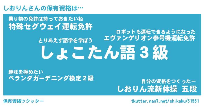 | 意味不明あだ名 | 『ペロリンしおりん』『永久保存しおりん』 |