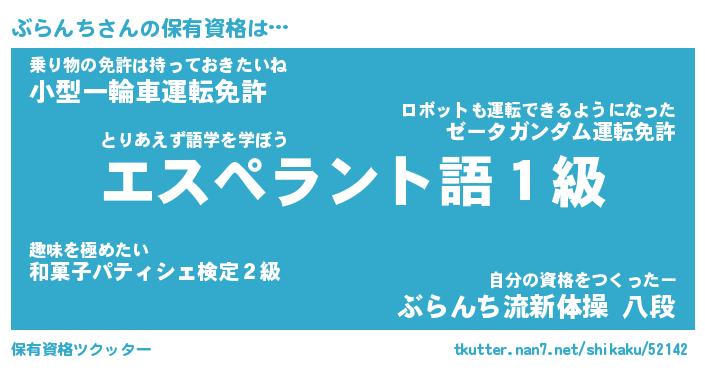 ぶらんちさんの保有資格は… とりあえず語学を学ぼう『エスペラント語1級』乗り物の免許は持っておきたいね『小型一輪車運転免許』自分の資格をつくったー『ぶらんち流新体操 八段』 ツクッター #保有資格ツクッター http://tkutter.nan7.net/shikaku/52142/