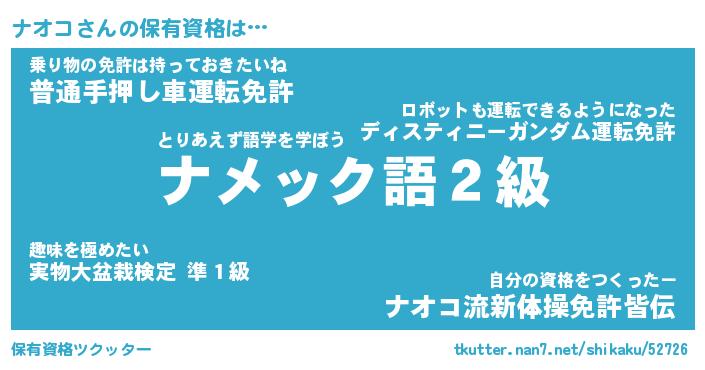 | 意味不明あだ名 | 『ペロリンナオコ』『ナオコフォーエバー』 |