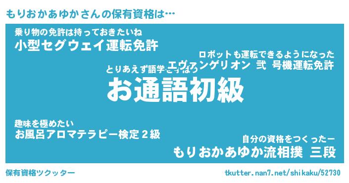 | 胡散臭い通販商品みたいなあだ名 | 『モテモテ間違いなし霊験あらたかなお札…その名も「もりおかあゆか」』 |