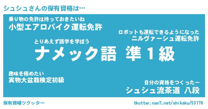 | ファンタジー風あだ名 | 『シュフェル』『エターナルシュシュー』 |