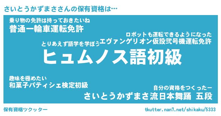 | ツイッター | さいとうかずまささんのツイッターID『namakemono_nyan』 |